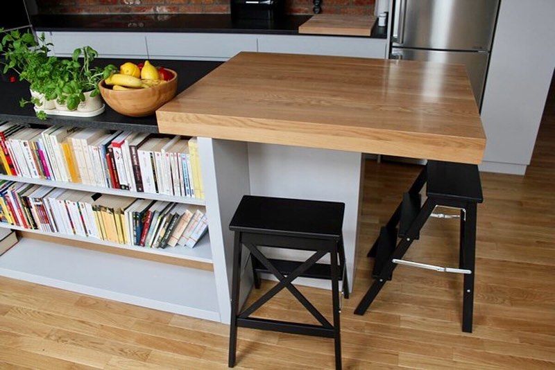 W wysokich kamienicach coraz częściej stosuje się estetyczne mini-drabinki lub wysuwane stopnie zintegrowane z meblem.